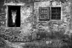 Ho incontrato per la prima volta questo meraviglioso cavallo bianco nel 2013; da allora sono tornato numerose volte a fotografarlo ed ogni volta era una emozione unica. Viveva in una stanza al piano terreno di una casa colonica trasformata in stalla, amato e curato dal suo proprietario che ne era molto orgoglioso. Era un cavallo di razza Percheron, di origine francese, agile e allo stesso tempo potente e resistente, elegantissimo nel portamento.